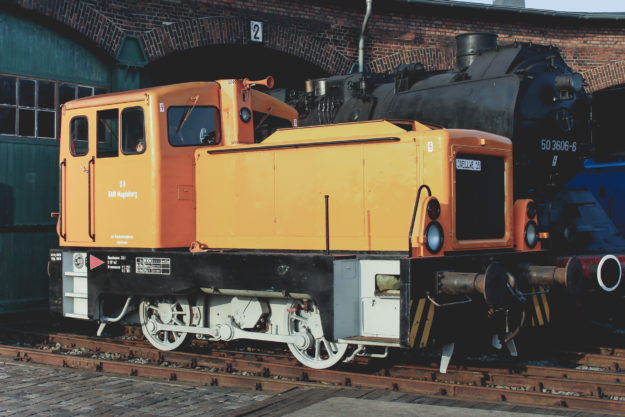 MEG 202 Baujahr: 1968 Hersteller: LOB Betriebsgattung: dh Höchstgeschwindigkeit: 80 km/h Fabriknummer: 280111 Kurzbezeichnung: B’B‘ LÜP: 19460 mm Foto: Lokschuppen Staßfurt Dauerleihgabe MEG nicht fahrbereit